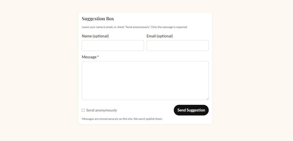 We’ve just launched a suggestion box! Have questions or want to suggest improvements? Let us know here: